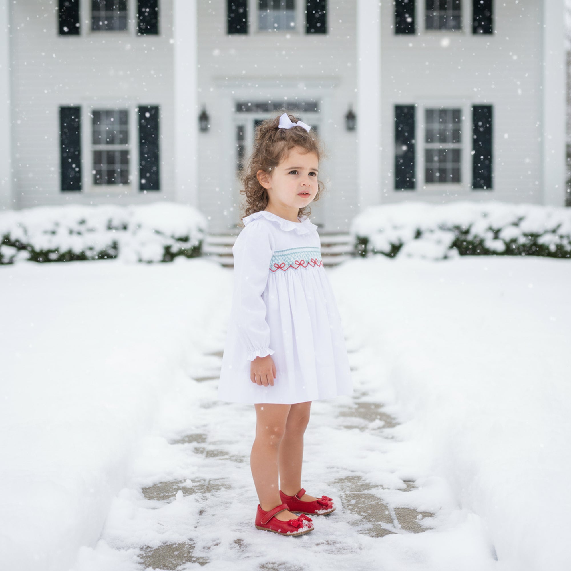 This is a beautiful bubble romper. The Santa hat has a white pompon at the tip. Good quality fabric. There are white bows at the side of legs… just perfect for a little girl. Everything is more than what I anticipated for my first time purchasing clothing from Etsy. Thank you so much!