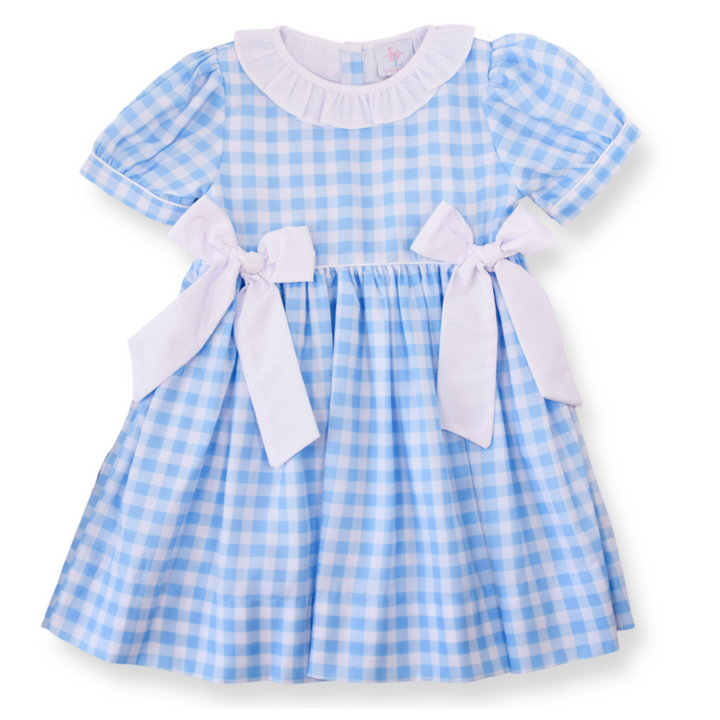 The Bethany Blue Gingham Smocked Dress is a timeless classic, perfect for adding charm to your little one's wardrobe. The soft blue gingham fabric offers a fresh, vintage-inspired look, while the lightweight and breathable material ensures all-day comfort. Ruffled sleeves and a gently gathered skirt create a graceful silhouette, making it an ideal choice for special occasions, family gatherings, or everyday wear. This beautifully designed dress is a must-have for any little girl who loves timeless style with a touch of tradition.