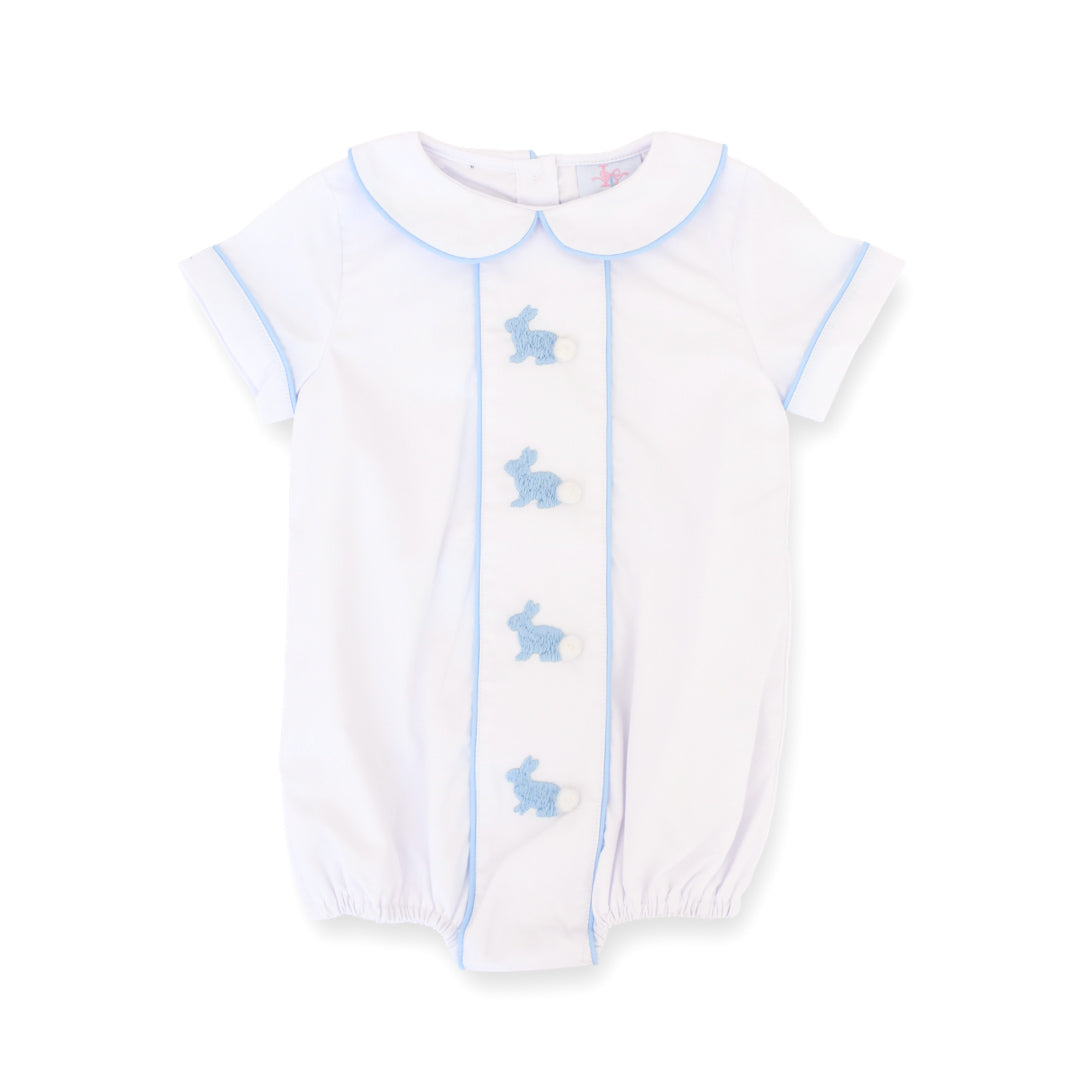 The Myles Bubble is a charming and playful outfit, perfect for Easter and springtime celebrations. Featuring hand-smocked embroidery with a cute cotton tail design, this bubble adds a whimsical touch to your little one’s wardrobe. The soft fabric ensures comfort for all-day wear, while the lightweight material keeps them cozy and cool during seasonal outings.