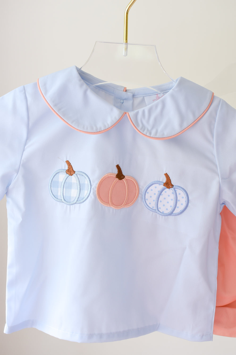 Boys Light Blue Smocked Pumpkin Diaper Set