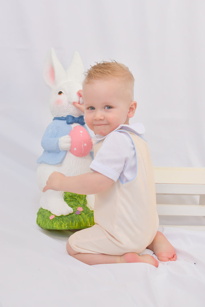 Bright and cheerful, the Carson Smocked Bunny Yellow Shortall is the perfect outfit for your little one's Easter celebrations. Featuring Embroidered bunnies on a timeless yellow fabric, this Shortall is both charming and comfortable for springtime events. The button-shoulder straps ensure easy dressing, making it a must-have for Easter, church, and family gatherings.
