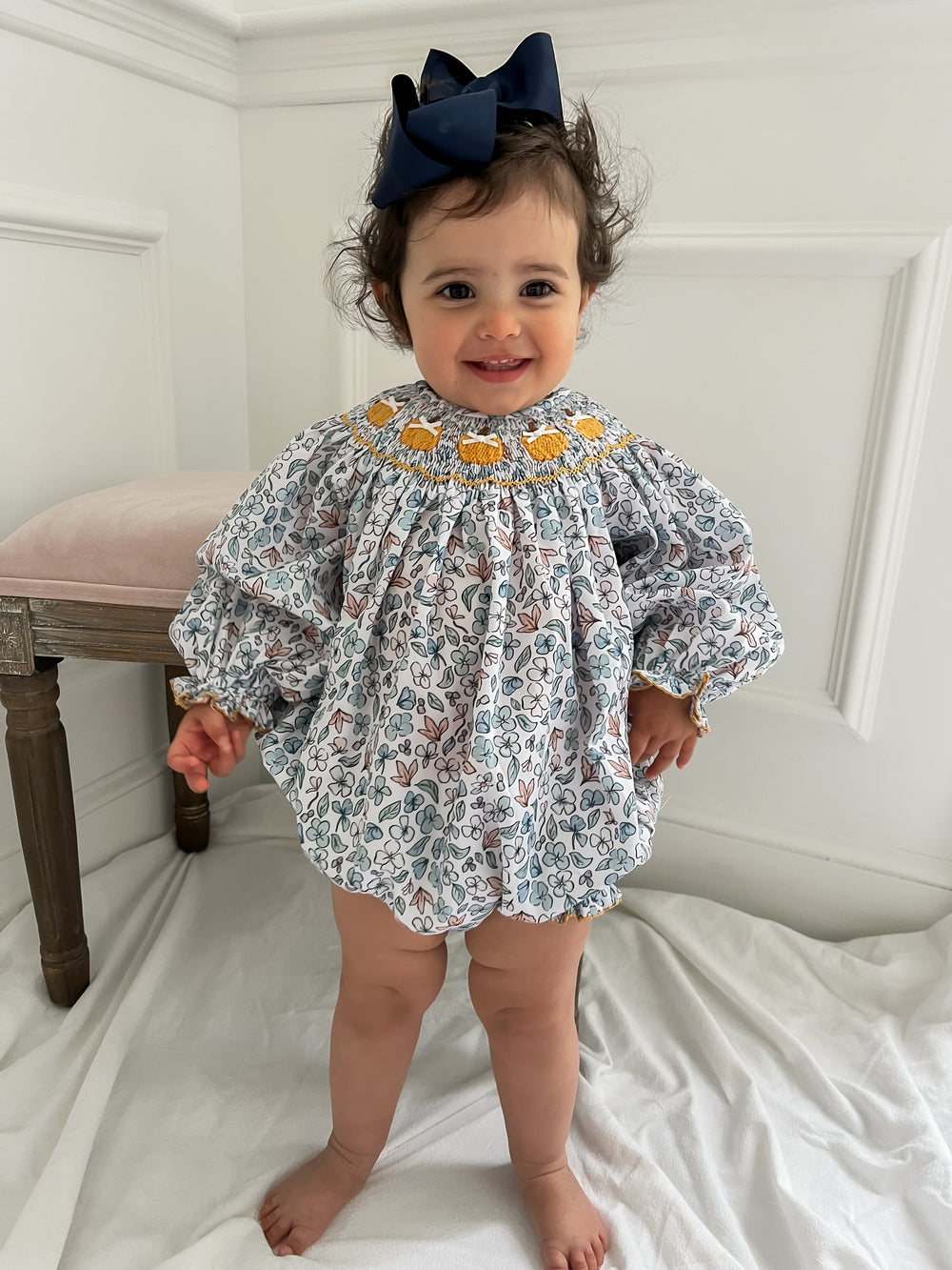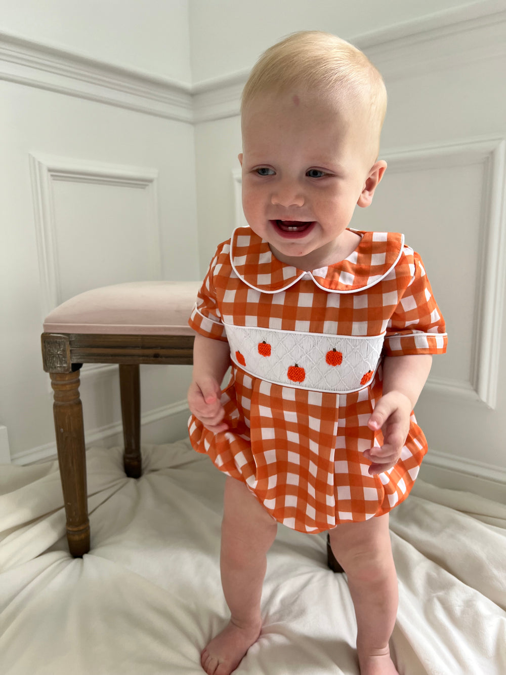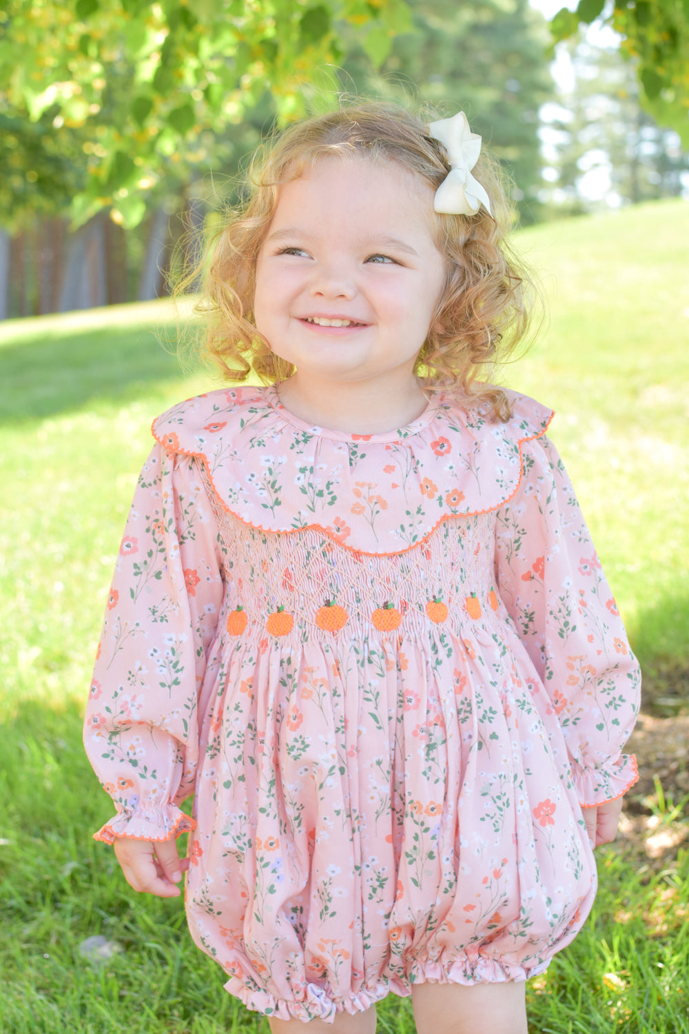 Celebrate the season in style with our Fall Collection – adorable smocked outfits and cozy autumn clothing for babies and toddlers. Perfect for boys and girls, our boutique styles feature festive pumpkins, harvest hues, and classic southern charm. Whether you're dressing up for pumpkin picking, family photos, or Thanksgiving, shop heirloom-quality outfits designed for comfort and cuteness. Available in sizes for infants, baby boys, baby girls, and toddlers.
