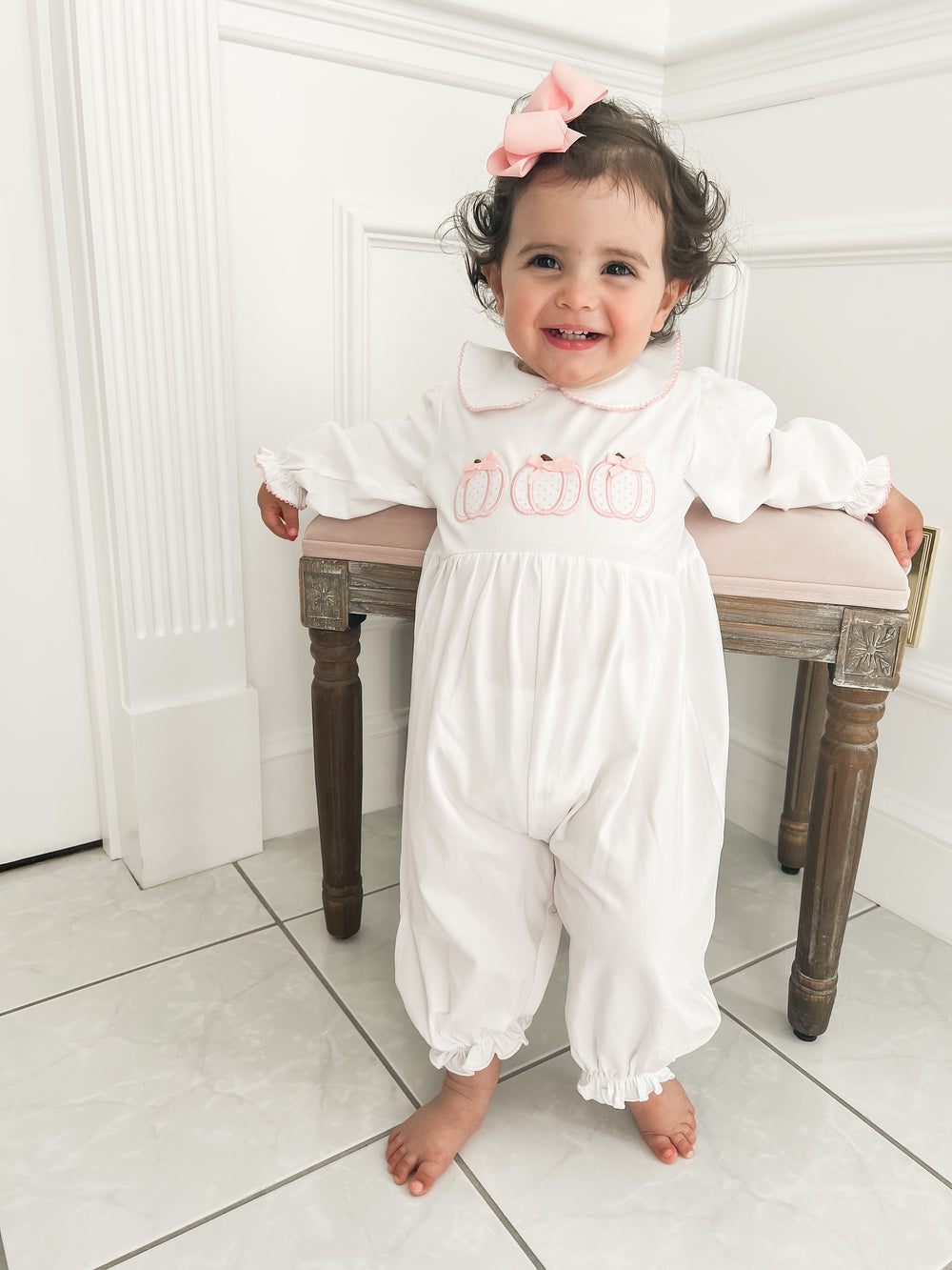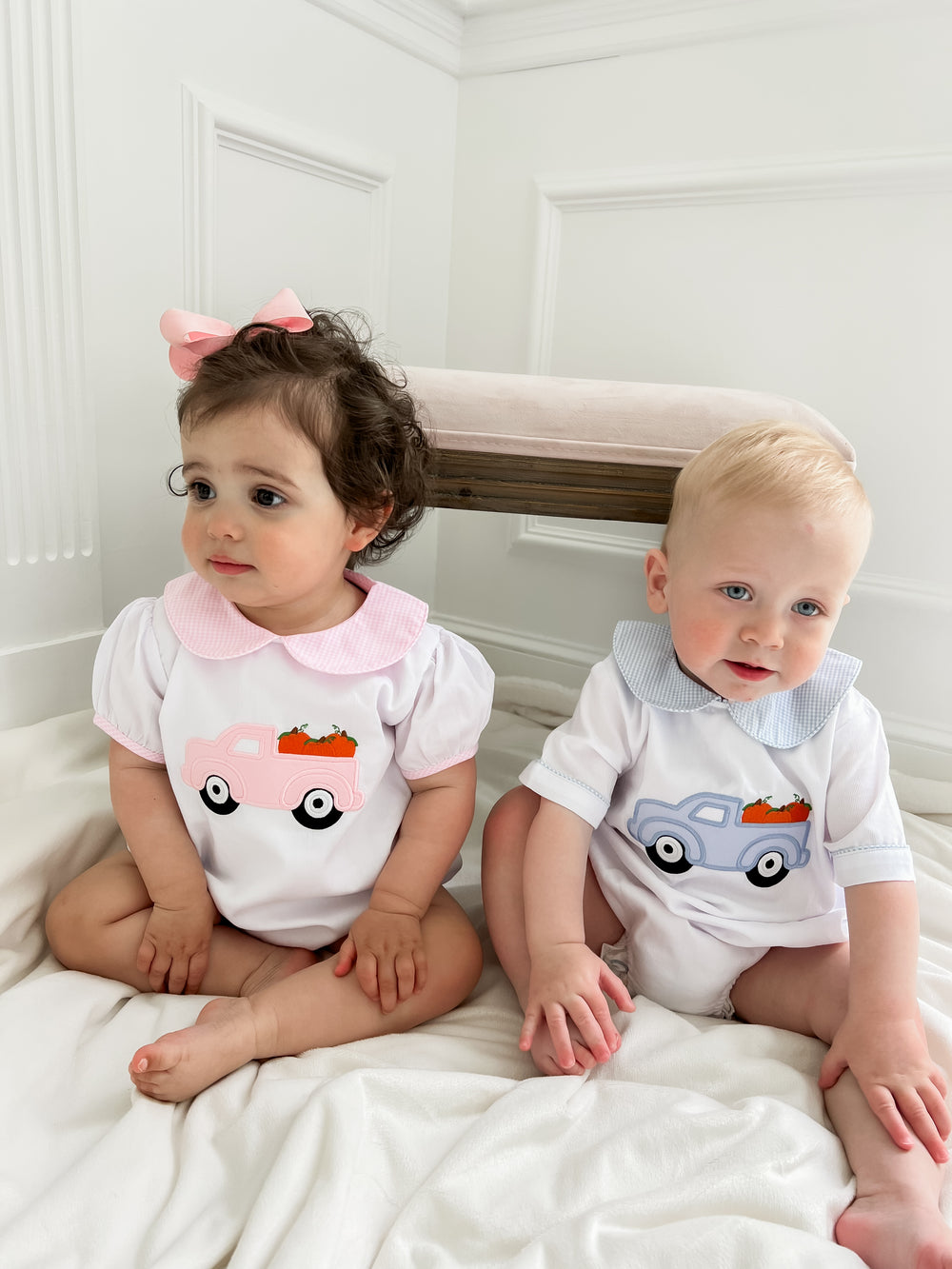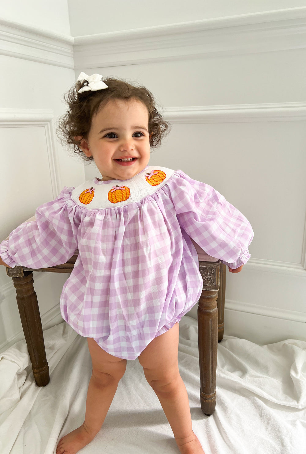 Celebrate the season in style with our Fall Collection – adorable smocked outfits and cozy autumn clothing for babies and toddlers. Perfect for boys and girls, our boutique styles feature festive pumpkins, harvest hues, and classic southern charm. Whether you're dressing up for pumpkin picking, family photos, or Thanksgiving, shop heirloom-quality outfits designed for comfort and cuteness. Available in sizes for infants, baby boys, baby girls, and toddlers.