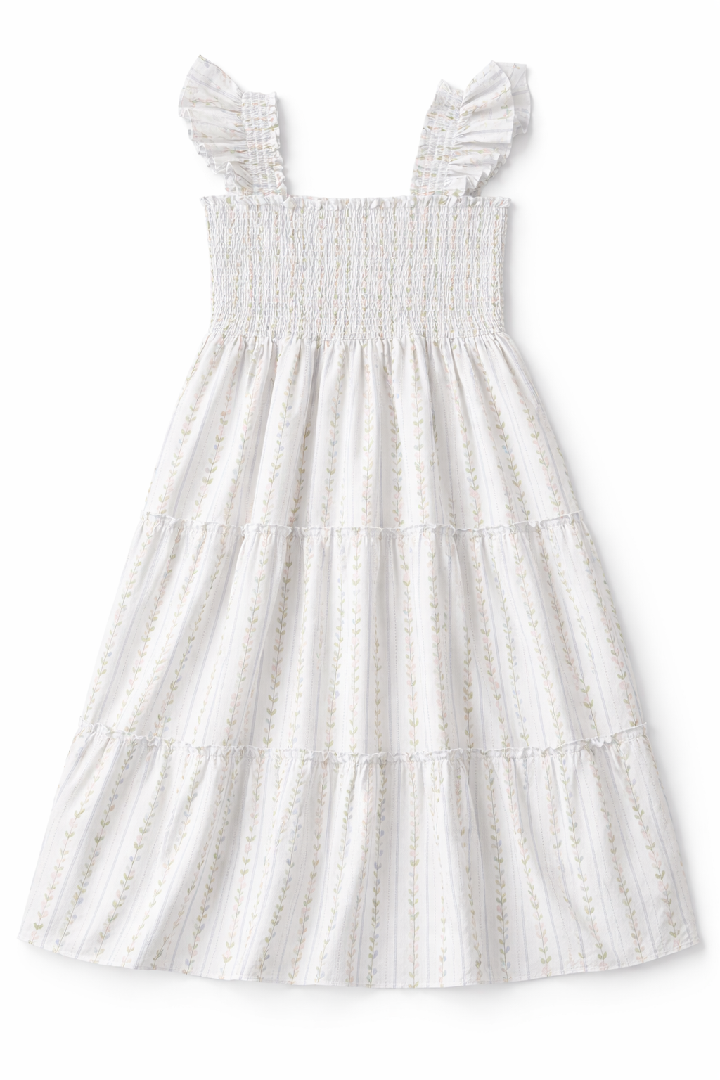 The Ellie Dress is an effortlessly feminine style you’ll reach for all season long. Designed in a soft pastel vine print with delicate pink and green tones, this breezy silhouette is perfect for everything from beach days to brunch and summer getaways.