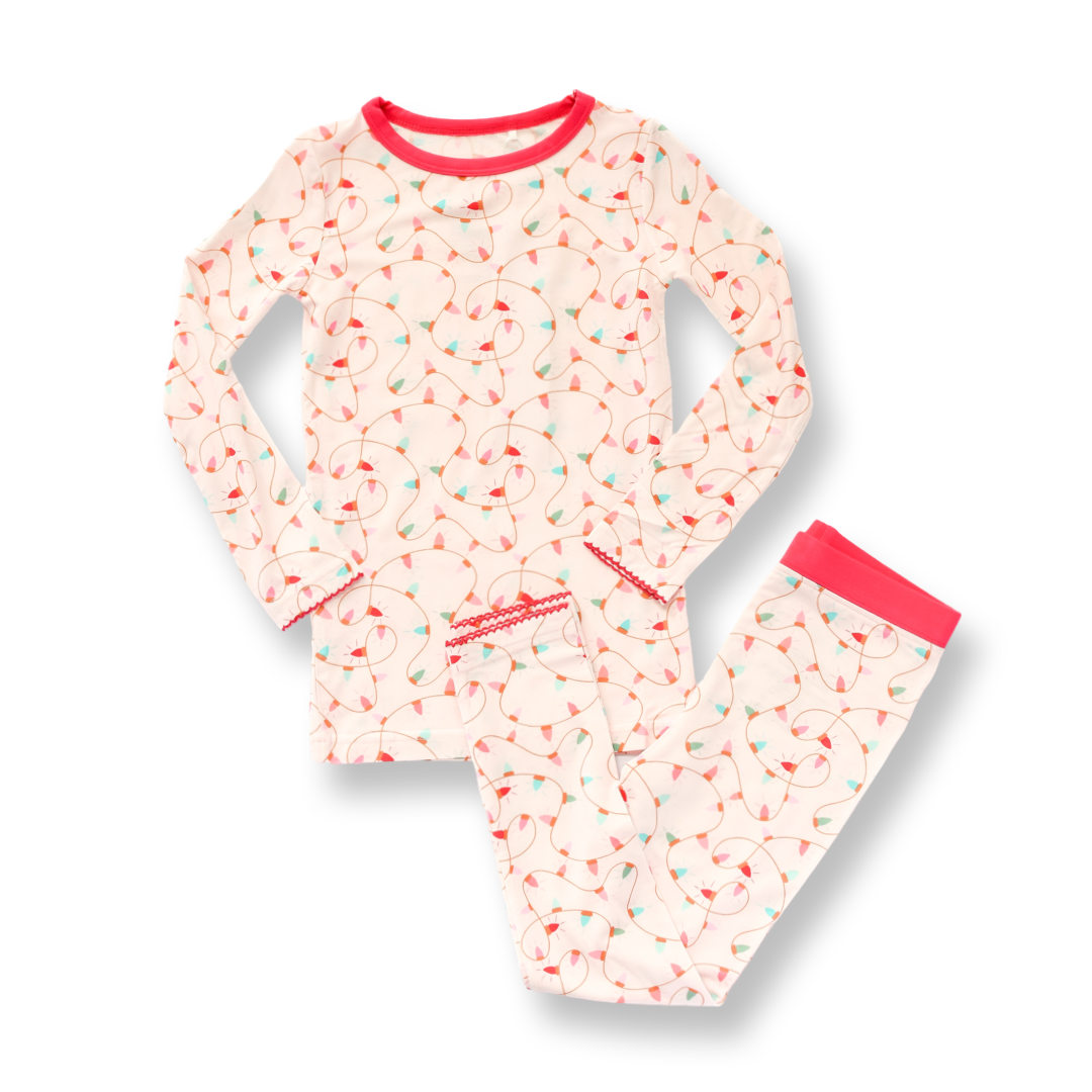 A festive Christmas Lights print makes this the perfect cozy holiday outfit!